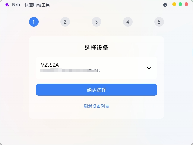 连接成功后,软件会自动识别到对应的设备,若未识别到,请检查是否开启开发者模式,是否开启USB调试