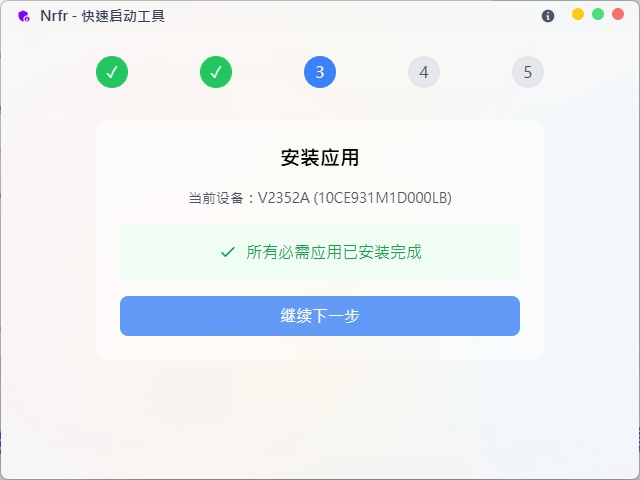 5.安装完成点击下一步(若提示失败,重新连接设备尝试)